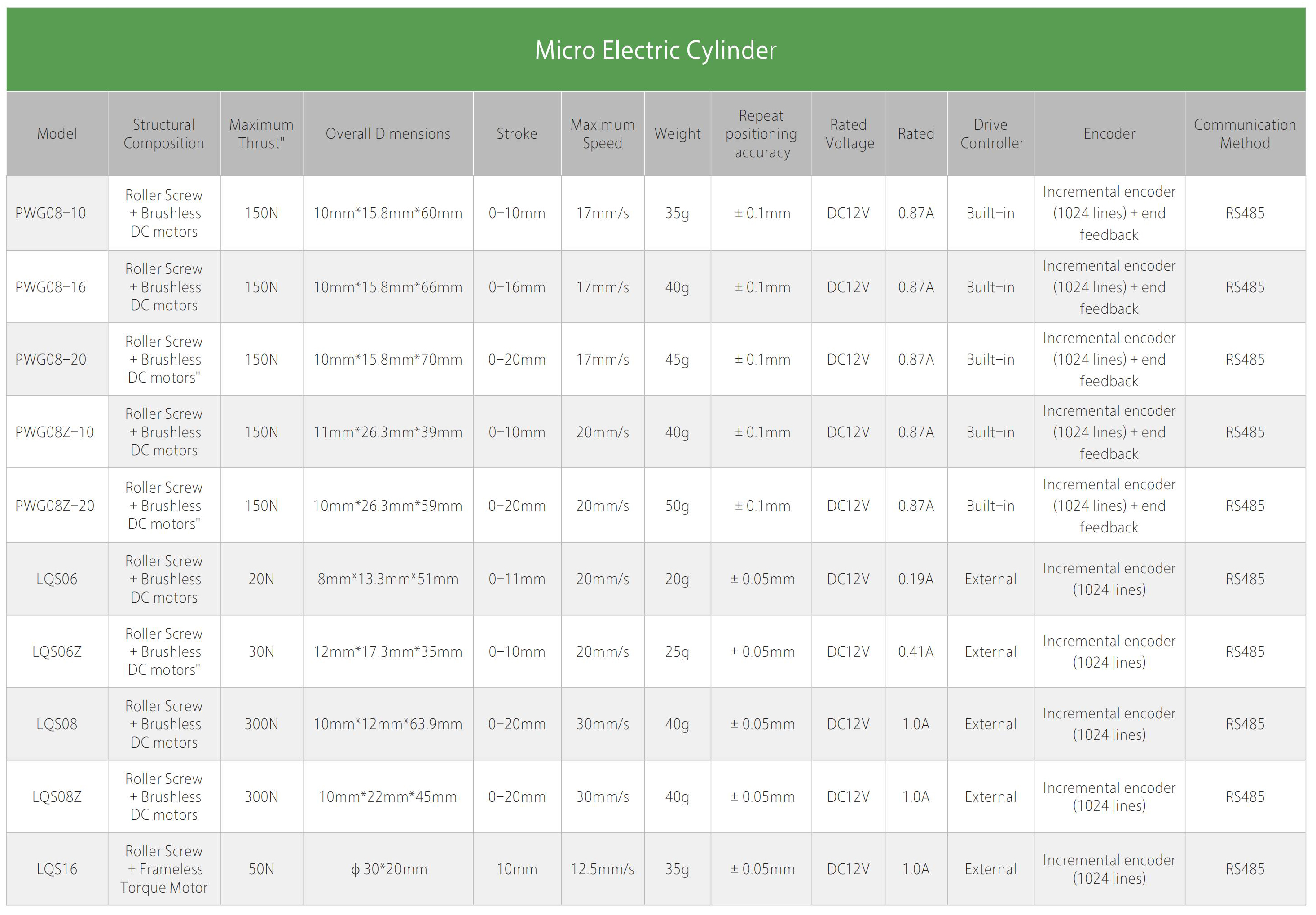 • Configuration: Planetary Roller Screw + Brushless Coreless Motor