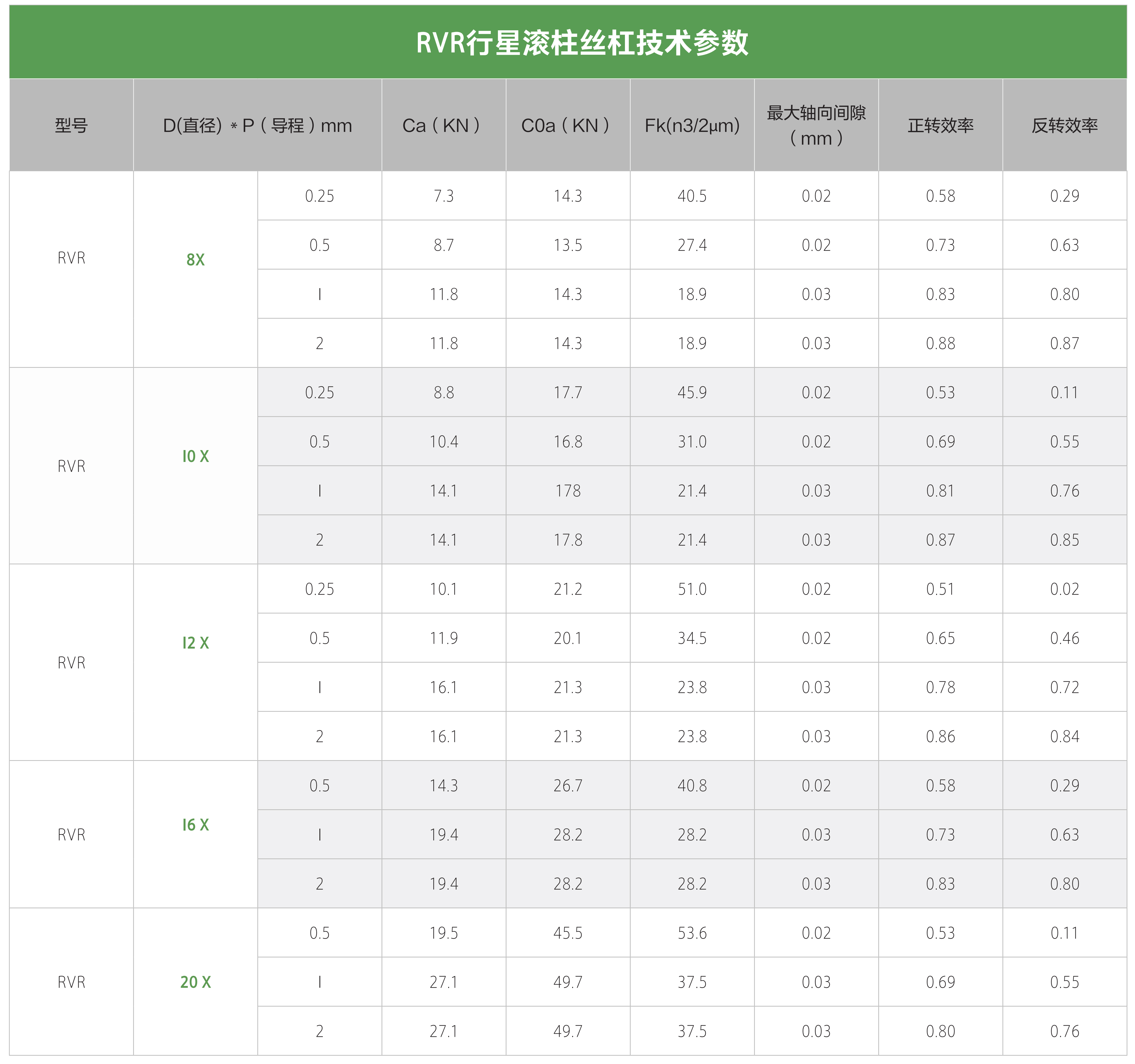 RVR循环式行星滚柱丝杠,因为滚柱是以行星布置围 绕丝杠轴向运行。然而其内在机制是不同于其他丝杠 设计。循环式设计的不同之处在于,滚柱经过研磨, 但没有螺纹角,因此滚柱在螺母内轴向移动,并在每 次通过轨道后重置或再循环。这种结构提供了极其精 确的线性运动。